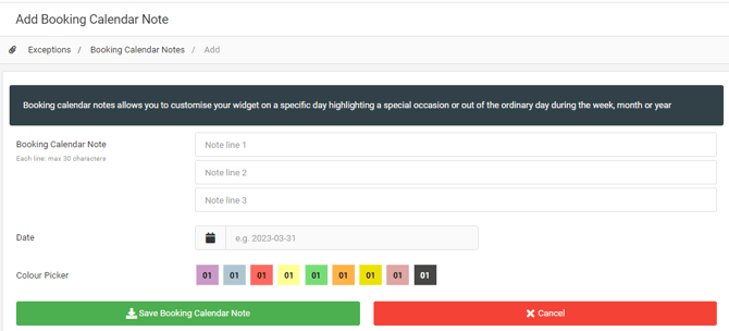 Don't forget to click on the green Add Booking Calendar Note button to save. This will then be live across all of your online channels.