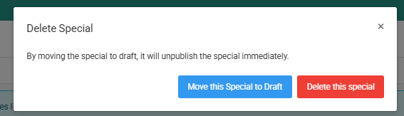 If you’d prefer to remove it completely, select Delete this special. Please note that once a special has been deleted, this action is permanent and it cannot be restored.