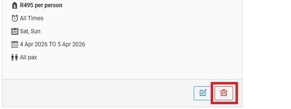Simply go to the Special you would like to unpublish or remove and select the “Bin icon”, as seen below: